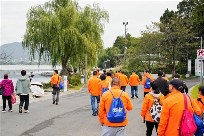 科普环节后,虽然空中伴着小雨,但在场医护人员、患者及家属的热情不减,一同走入玄武湖公园,开启了“同一天,一起行-美乐时刻,与爱同行”健步走环节。公园内游人漫步,大家在烟雨朦胧的湖景中感受着自然的疗愈力。