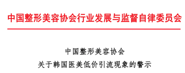 今年 3 月,中国整形美容协会发布《关于韩国医美低价引流现象的警示》。
