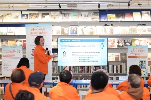 作为全国九城联动系列活动的收官之站,患者及家属们精神饱满,提前一小时便陆续抵达位于梦中心的群岛Books书店,与专家、志愿者们亲切交流,现场气氛温暖而活跃。活动邀请了来自复旦大学附属肿瘤医院的陈海泉教授、王佳蕾教授等临床专家,与数十位肺癌患者及家属,在书香中聆听科普,随后一同前往徐汇滨江步道,共同完成了一场意义非凡的“身心康复之旅”。