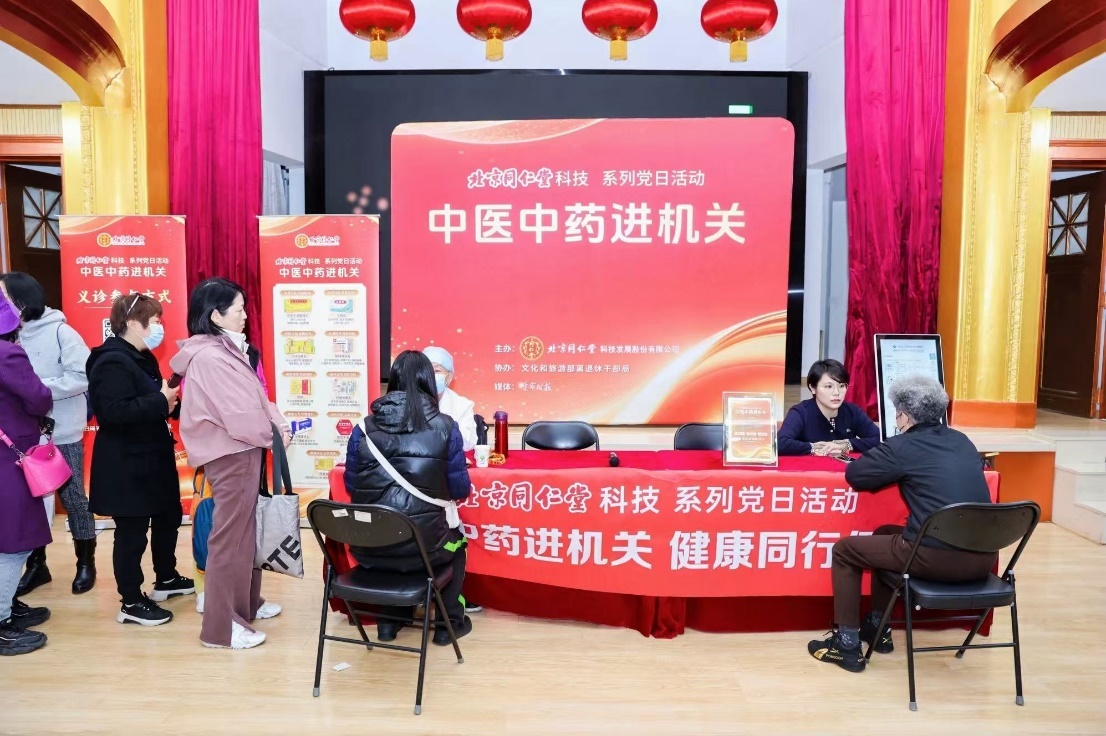 2025年11月13日上午,由北京同仁堂科技发展股份有限公司主办的“中医中药进机关”系列党日活动在文化和旅游部离退休干部局成功举办。活动践行党建引领,通过专题讲座、专家义诊等形式,将优质的中医药健康服务送至离退休老同志身边。