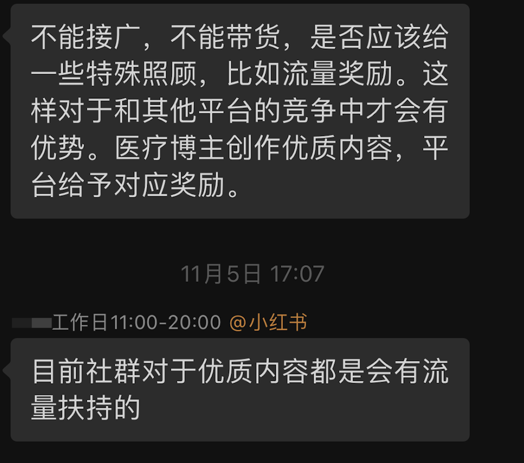 另一位在小红书参加了医疗科普训练营的朱峰医生更是直言不讳,选择做科普就是想多创收,但自从小红书的工作人员表示医疗账号不能接任何形式的推广后,朱峰的科普动力大减,「我觉得平台应该想一下有没有新的变现途径,纯靠用爱发电是很难坚持下去的。」