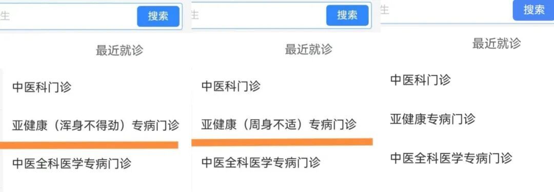 被媒体报道登上热搜后,医院悄悄将其改名为「亚健康(周身不适)专病门诊」,不到 1 天,又改为「亚健康专病门诊」。