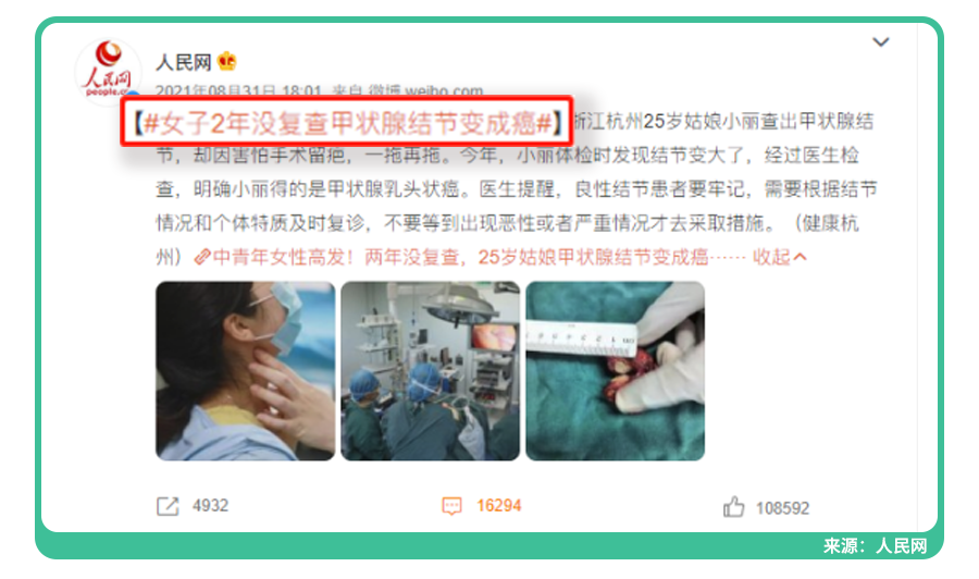 并且,对于良性未手术的人群,一定要按期复查!!千万不要像下面这个小姑娘: