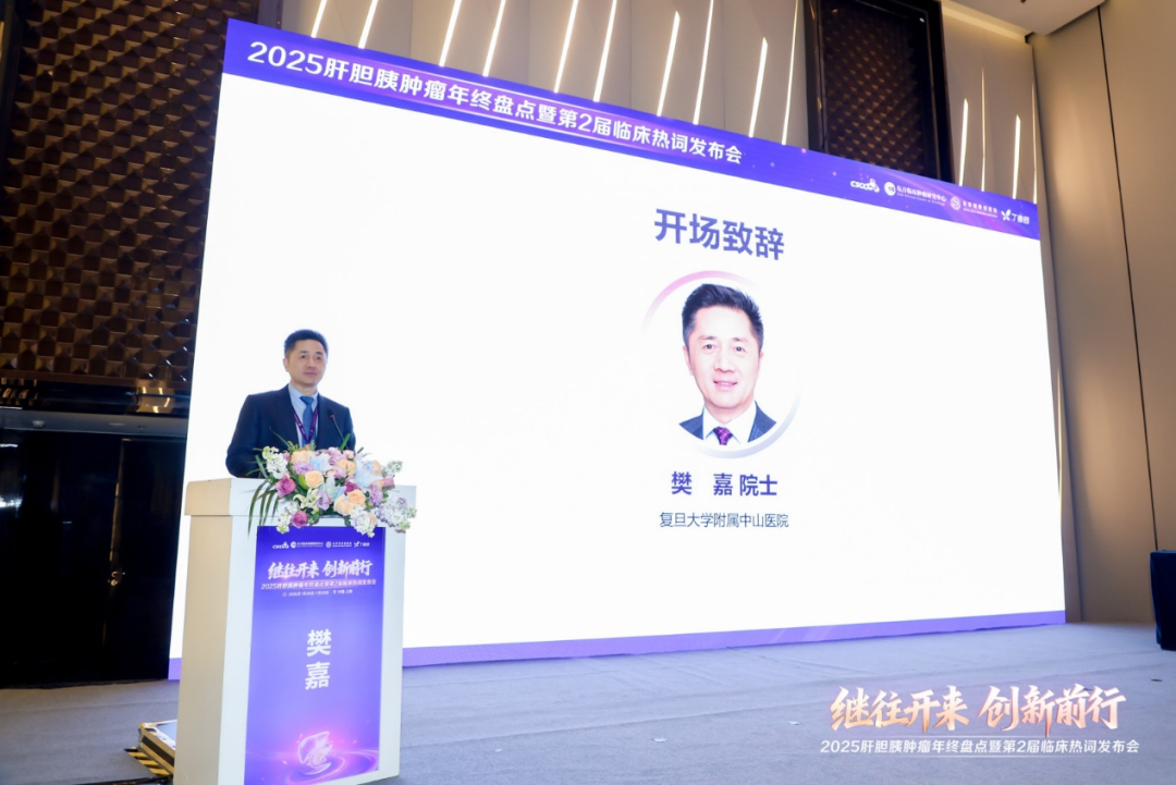 大会主席樊嘉院士致辞指出,肝胆胰肿瘤因高异质性、强侵袭性、低早期诊断率成为临床难题。在「健康中国 2030」战略下,我国该领域防治体系已实现从基础研究到临床转化、单学科到多学科协作的变革。本次会议锚定临床痛点提炼年度热词、聚焦前沿盘点十大进展、着眼未来布局发展方向,他强调中国学者需以原始创新破局,打破学科壁垒加速成果转化,实现从「跟跑」到「领跑」的跨越,期待会议成为交流桥梁与创新火种,预祝大会圆满成功。