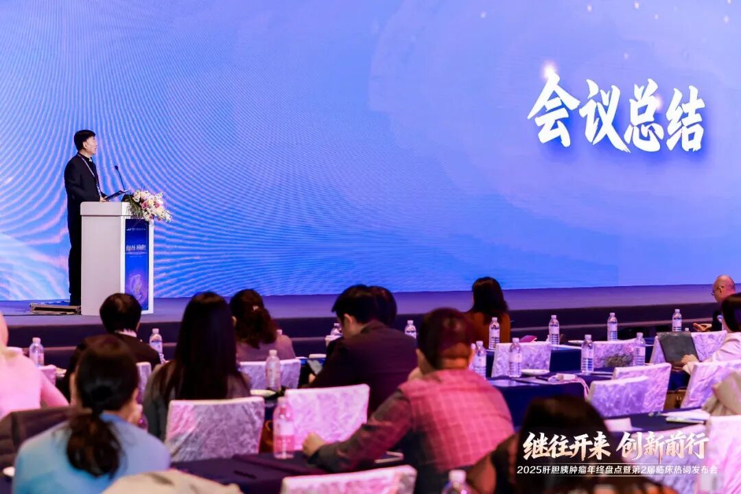 沈锋教授对本次临床研究交流会进行了总结性发言。临床研究交流会是 2025 肝胆胰肿瘤年终盘点暨第 2 届临床热词发布会的会前预热活动。本次会议中,领域大咖与中青年专家齐聚一堂、各抒己见,围绕关键议题深入研讨,凝聚发展共识,为肝胆胰肿瘤学科的创新突破注入强劲动力。
