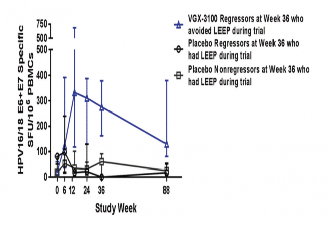 2015年,Inovio 制药发布 VGX-3100 治疗高级别宫颈肿瘤妇女的IIb期试验结果,所有终点均达到统计学差异。“更广泛地说,这项试验证明在最初未能控制感染的妇女中,提升 HPV 的免疫清除是可能的。” 在评论 Inovio 的 HPV 结果时,美国国家癌症研究所癌症流行病学&遗传学的两位高级研究人员(Schiffman 博士与 Wentzensen 博士)写道。
