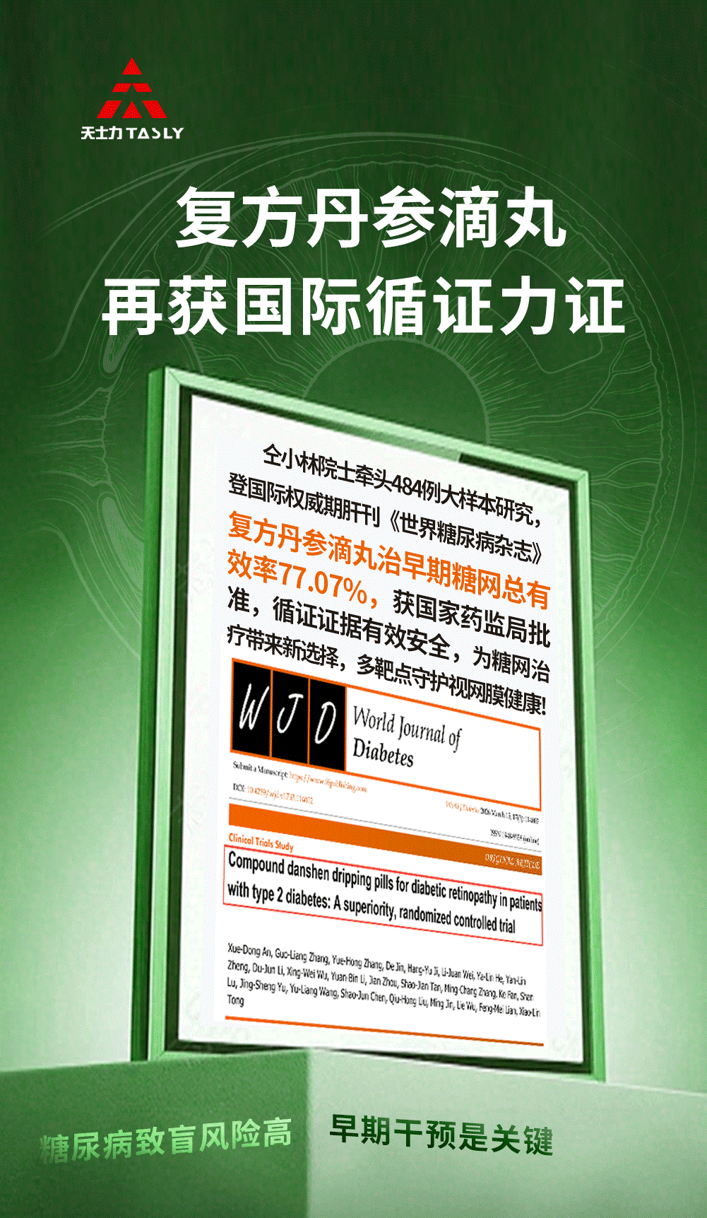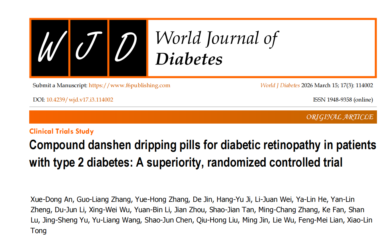 这项发表在国际权威期刊《世界糖尿病杂志》的研究,由中国科学院院士、著名糖尿病专家仝小林院士牵头在 16 家知名医院联合开展大样本(484例)随机对照的临床试验,还邀请了第三方专业团队盲评结果,确保结论真实可靠。研究中患者服用复方丹参滴丸(20 丸 / 次,每日 3 次)治疗 24 周,最终得出的结果让人振奋:复方丹参滴丸治疗 NPDR 的总体有效率高达 77.07%,远高于对照组的 53.72%,意味着近八成患者的眼底病变得到了改善或稳定,且研究证实其安全性极佳,适合糖友长期服用。