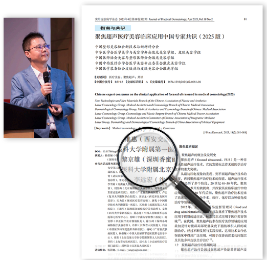 2025年,黎京雄院长作为专家组成员,参与制定了《聚焦超声医疗美容临床应用中国专家共识》。将临床一线实践经验与学术研究成果有机融合,进一步确立行业规范。