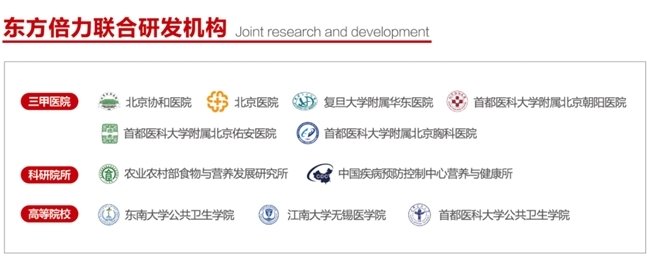 2019年,东方倍力与北京协和医院、中国疾病预防控制中心营养与健康所合作北京市科技计划课题,进行《营养健康预警平台建设及其指标体系的构建研究》平台的建立。