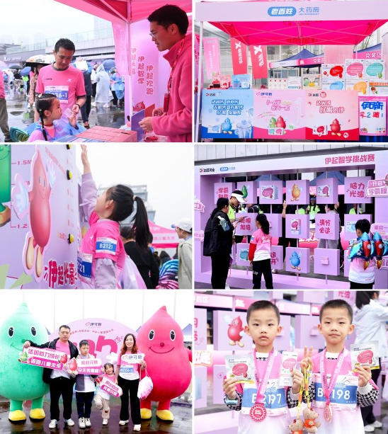 赛道蜿蜒穿梭于绝美洋湖湿地,水光鹭影相映成趣,为参赛亲子家庭带来别样的运动体验。赛场之外,达因药业携合作伙伴老百姓大药房为孩子们打造了专属的营养补给站,围绕“伊起长高、伊起智学、伊起欢跑”三大核心价值主张,为亲子家庭带来近距离的健康体验与营养加持;其中伊可新®维生素AD滴剂搭配达因钙助力孩子骨骼发育,为伊起长高筑牢营养根基;伊可新®DHA藻油+ARA凝胶糖果和伊可新®DHA藻油磷脂酰丝氨酸凝胶糖果科学补充眼脑营养,为伊起智学注入思维活力;伊可新®液体AD钙镁锌饮搭配达因铁补足体能营养,为伊起欢跑加持运动能量。此外,现场还有“伊起长高挑战赛”激发生长潜能、“伊起智学挑战赛”点燃思维火花、“伊起欢跑拍照区”定格欢乐成长印记等趣味互动环节,将“科学营养+合理运动”的健康理念转化为可触可感的沉浸式体验,让亲子家庭在场景中轻松收获知识和成长。