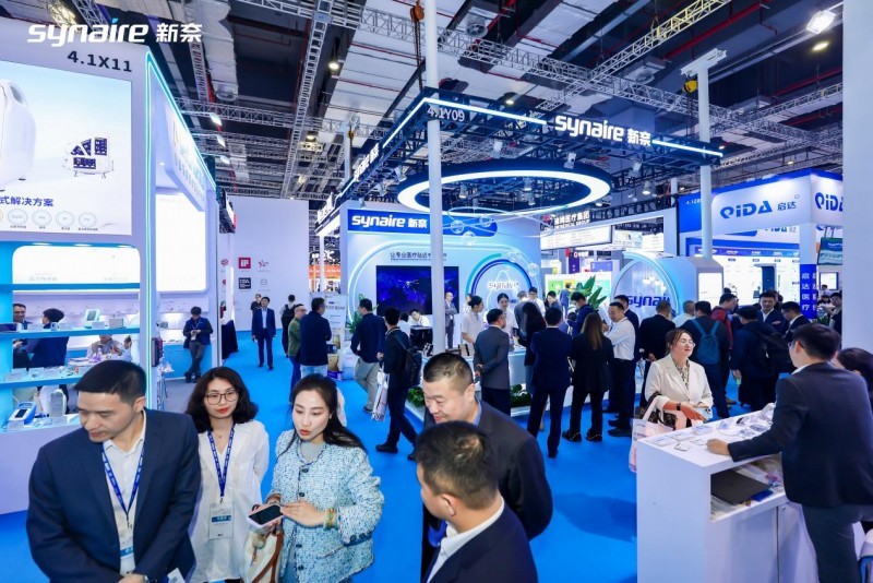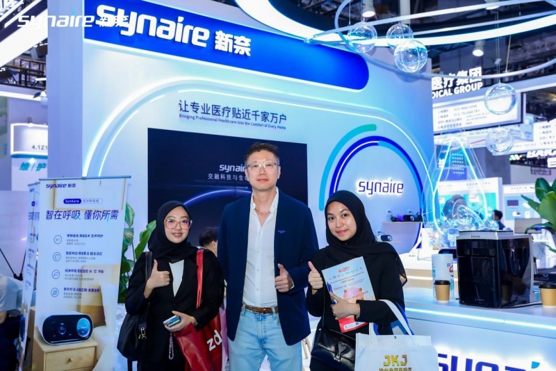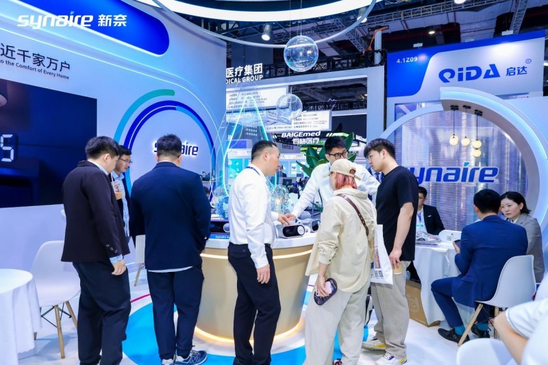 展会上,新奈SynAura系列产品凭借无填充物设计、自研AI算法体系、矩阵式芯片架构及高效智能的自适应湿化等核心技术,开展首日即吸引众多中外渠道商、医疗机构及行业观众驻足体验,人气持续高涨。