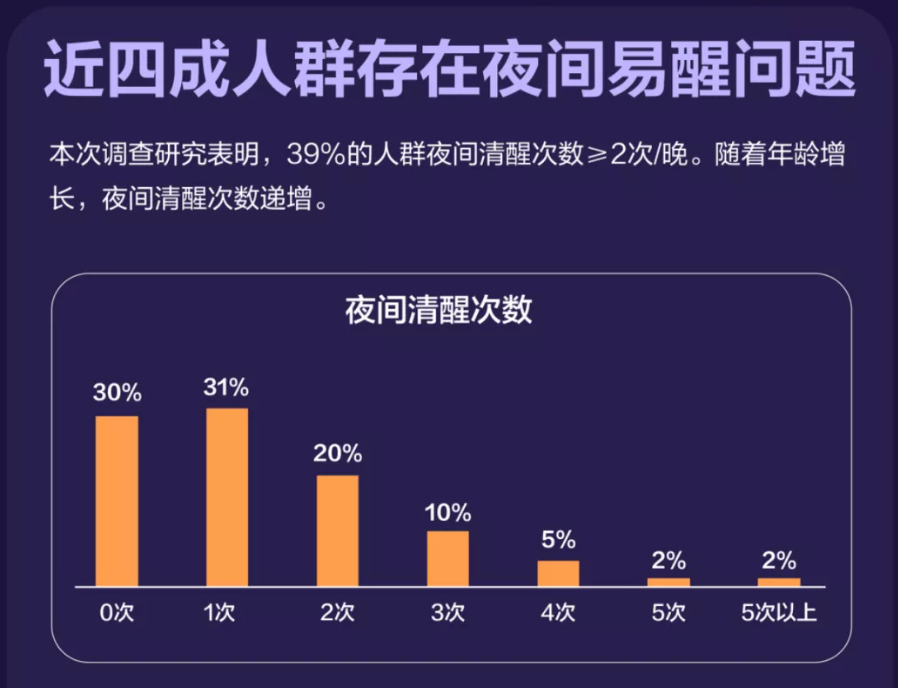据《2025 年中国睡眠健康调查报告》显示,我国 18 岁及以上人群睡眠困扰率达 48.5%,超过 3 亿人存在睡眠障碍,约 1.5 亿人需要积极干预。[3]