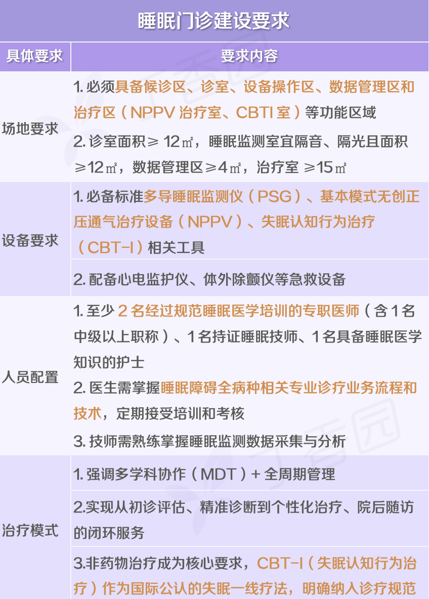 无论在场地条件、人员配置还是治疗模式上,新一轮睡眠门诊的建设要求较传统模式有明显升级。