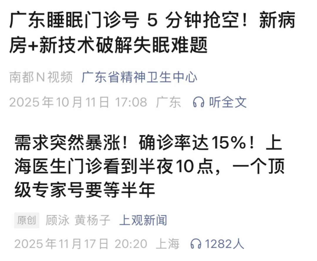 此前据多家媒体报道,大型三甲医院的睡眠门诊一号难求。