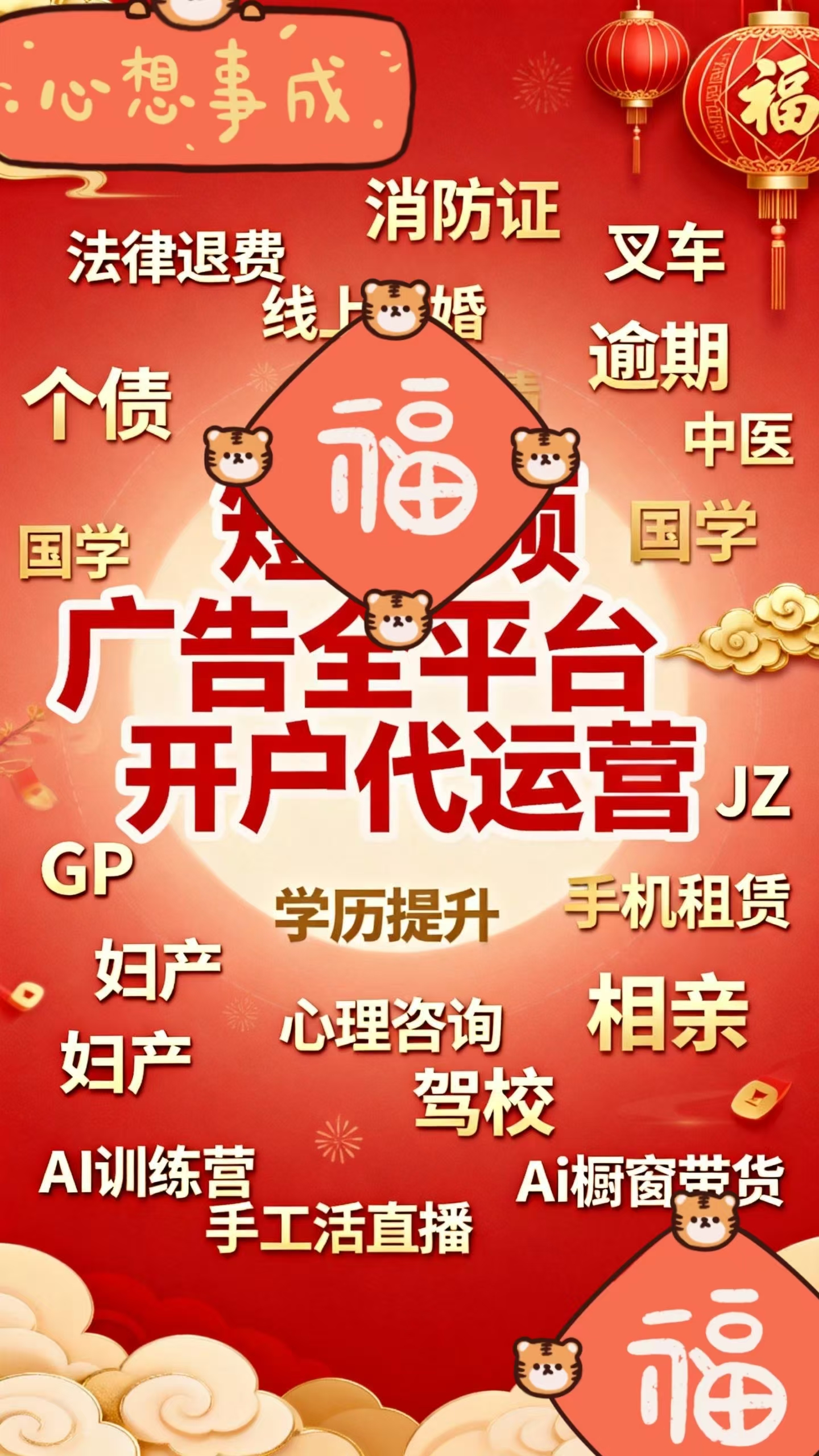 全行业可开:商服法律(逾期、个债) 大健康(保健食品、OTC药品、医疗器械) 医疗机构(体检、妇产、口腔眼科专科) 教育(ai剪辑、院校招生、学历提升、家庭教育) 生活服务,(祛斑祛痘纹眉、发型设计、手机回收、手机租赁、黄金老物件回收、婚纱摄影)百货家具, 招商加盟 旅游 健康养生 运势测算等等。需要信息流推广的联系我吧
