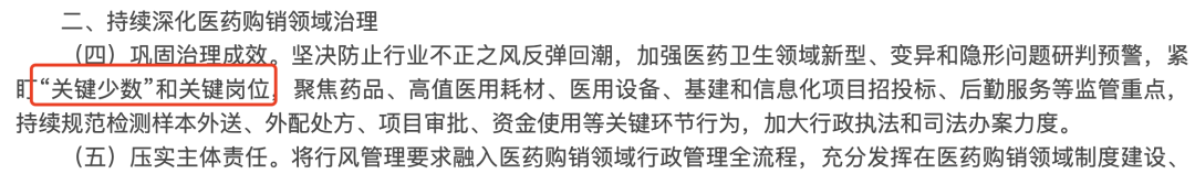 今年 6 月,国家卫健委等 14 部门发布《2025 年纠正医药购销领域和医疗服务中不正之风工作要点》。其中明确,要紧盯「关键少数」和关键岗位,聚焦药品、高值医用耗材、医用设备、基建和信息化项目招投标、后勤服务等监管重点。
