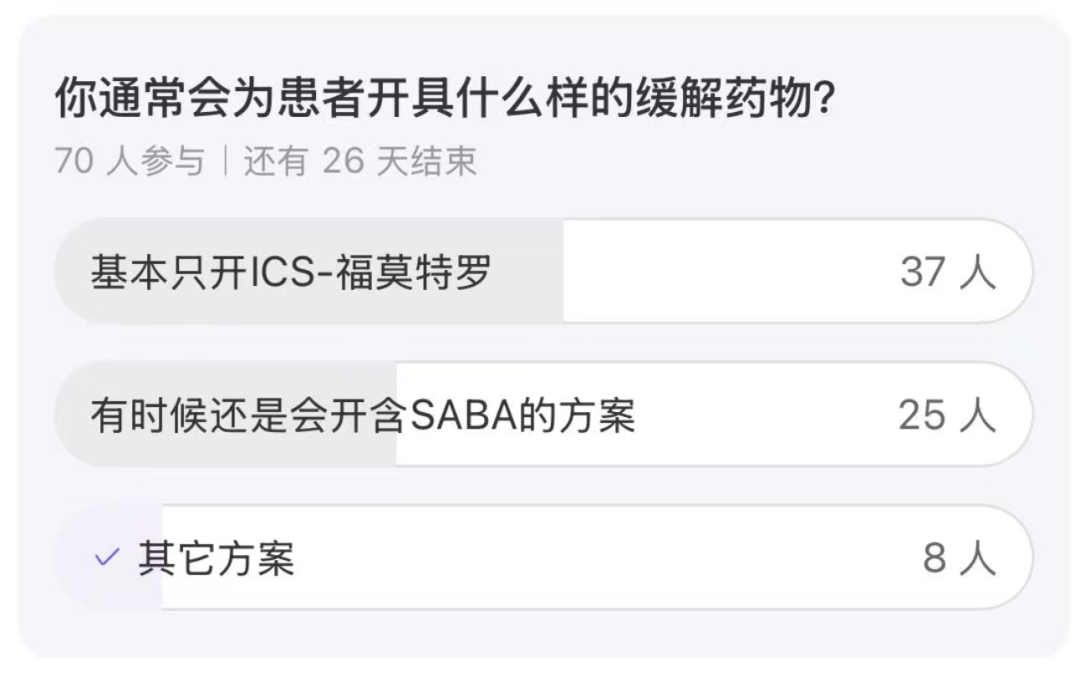 有基层医生表示,尽管对「抗炎缓解」的理念也有一定了解,但他并不知道指南在具体用药方案上的变更。在实践中,他还是会建议患者长期用 ICS-LABA 控制、急性期少量使用 SABA 缓解——也就是 2019 年以前的主流指南给出的方案。