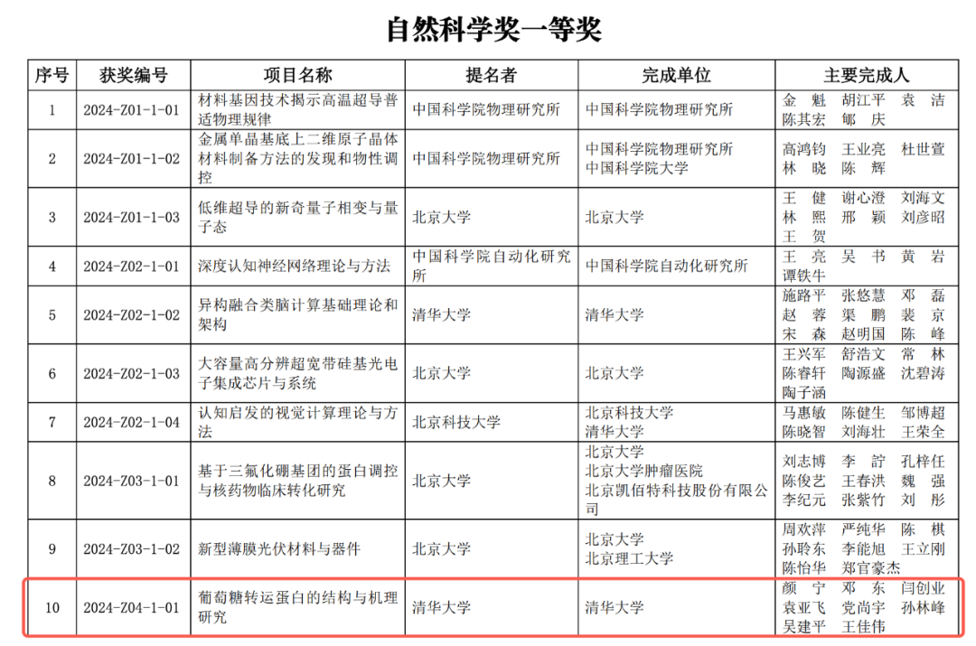 其中,清华大学颜宁教授团队的《葡萄糖转运蛋白的结构与机理研究》项目荣获自然科学奖一等奖,该项目的主要完成人包括颜宁、邓东、闫创业、袁亚飞、党尚宇、孙林峰、吴建平、王佳伟。