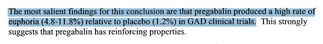 其实,最早在美国上市时,获批依据的临床试验里就提到:「对比安慰剂组,普瑞巴林会引起更高比例的『欣快感』不良反应。」不过当时认为,对比其他药物,普瑞巴林的「被滥用和依赖的可能性较低」。[8,9]