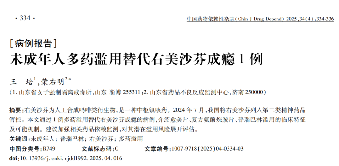 无独有偶,2014 年,芬兰团队也报告了国内存在普瑞巴林滥用现象。[9]