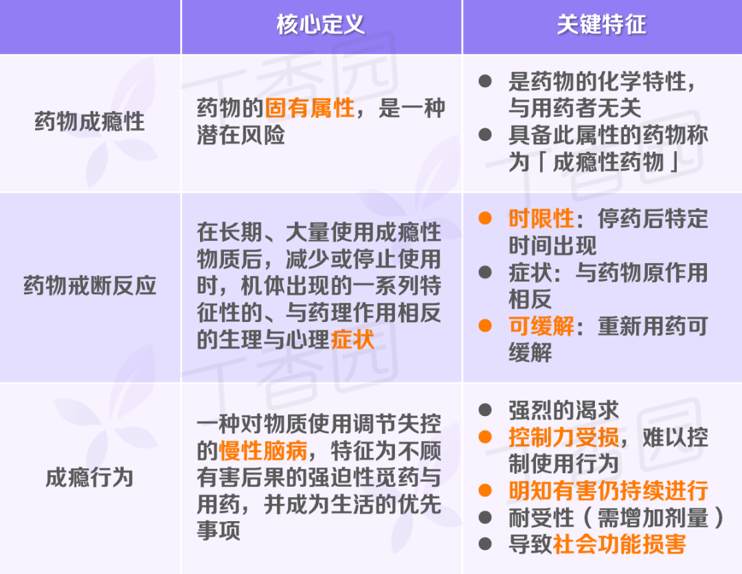 一个药物具有成瘾性 ≠ 使用者一定会成瘾;同样,出现药物戒断反应 ≠ 已经成瘾。